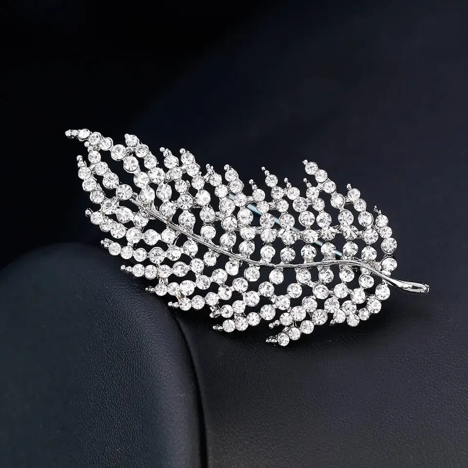 Vintage Crystal Feather Brooch – Elegant Pin for Women